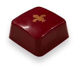 Strawberry, blueberry and red raspberry puree infused in a luxurious caramel in a milk chocolate shell, hand painted red with a gold fleur-de-lis accent.